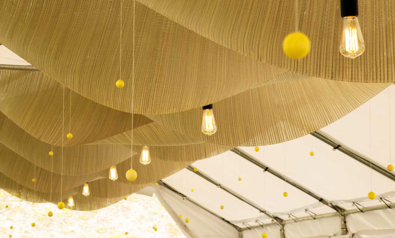 In edition 2024 folk decorations made of straw was our inspiration. We translated color, texture and the way the straw is traditionally weaved into table vessels and ceiling installation.